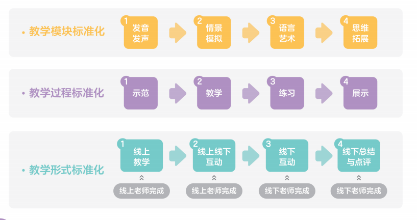 标准化的课程产出,教学模块标准化、教学过程标准化、教学形式标准化,一目了然,易于教学,新手老师也能上好的口才课。